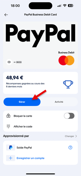 Une fois votre carte reçue, aller sur votre compte PayPal. Sur la page d’accueil dans Solde PayPal, cliquer sur votre carte.